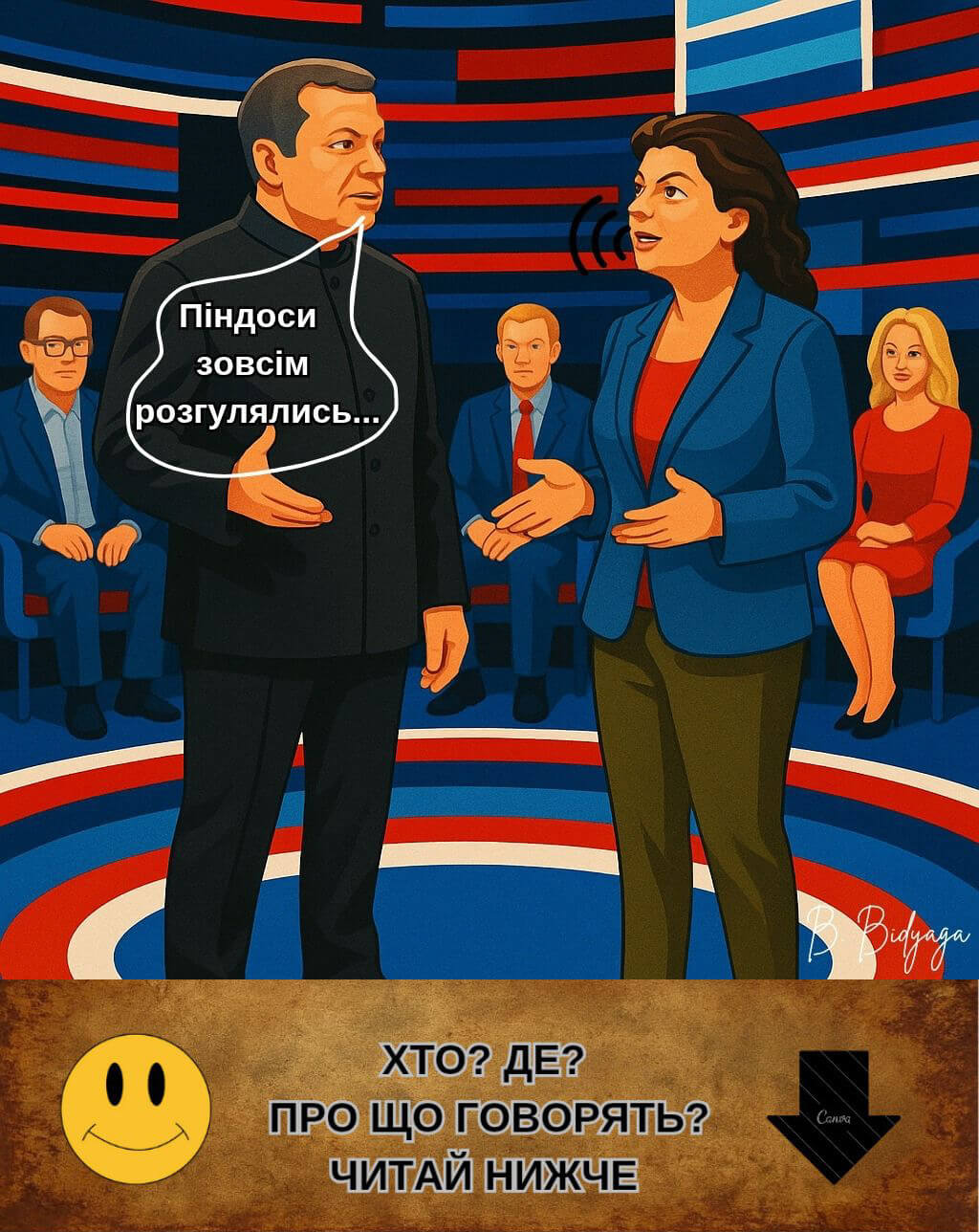 Росія. Москва. Студія відомого російського пропагандиста Володимира Соловйова. Він веде бесіду з ще більш відомою пропагандисткою — Маргаритою Симон’ян.