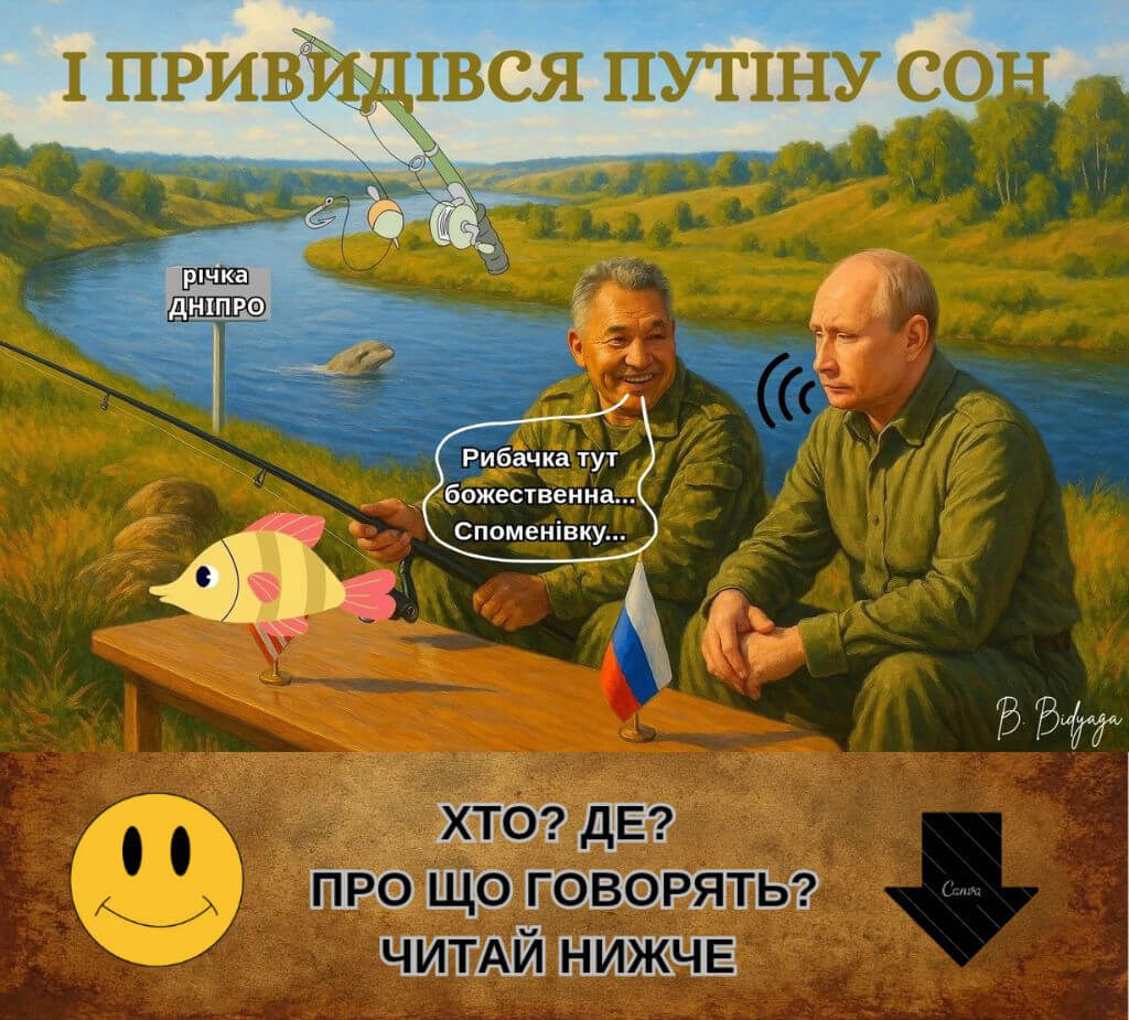 Президенту Росії Володимиру Путіну сниться сон. Ніби він сам і міністр оборони Сергій Шойгу рибалять на Дніпрі в Україні.