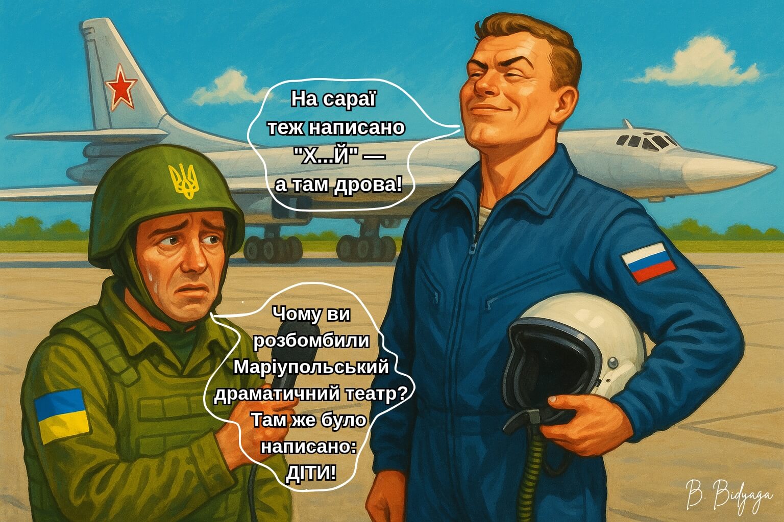 — Чому ви розбомбили Маріупольський драматичний театр? Там же було написано: “ДІТИ!”