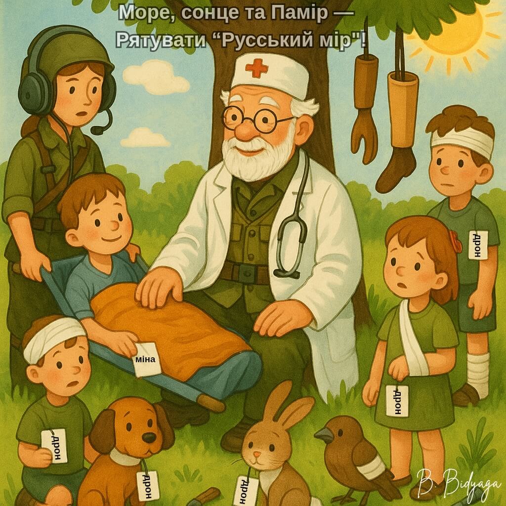 — Це оптична ілюзія. Запам’ятайте раз і назавжди: де ступила нога російського солдата — там і є територія Росії. Згідно з російським міжнародним правом.