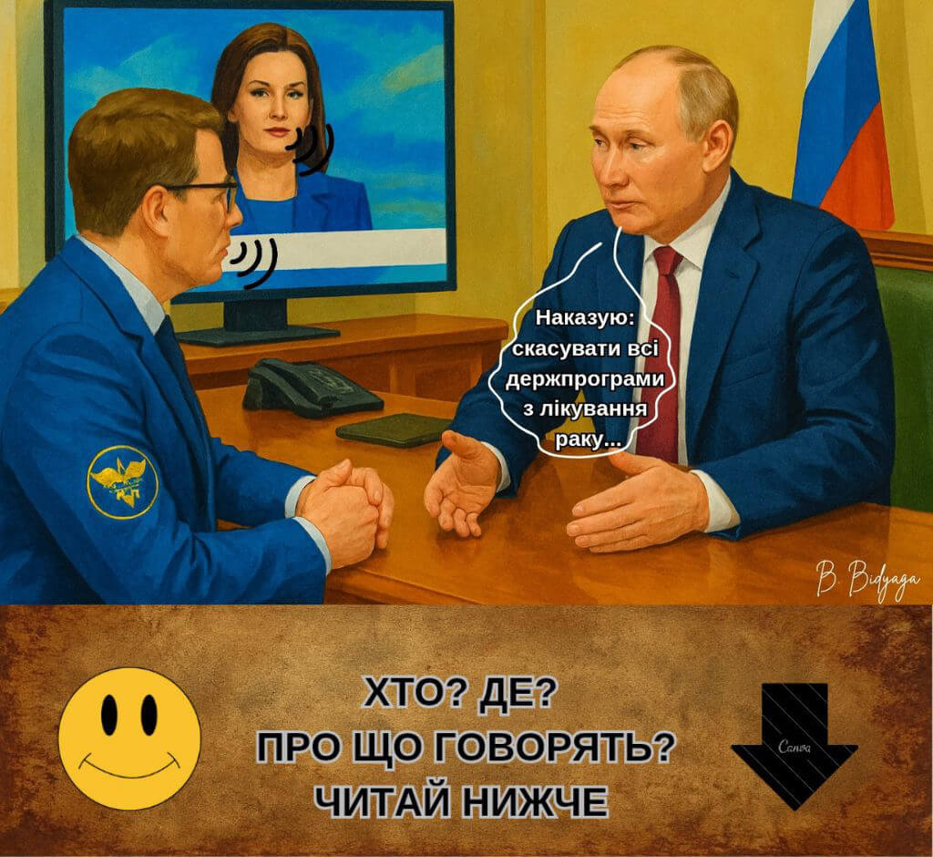 — Наказую: скасувати всі держпрограми з лікування раку та безкоштовну роздачу ліків. Усі звільнені кошти спрямувати на виробництво протезів та реабілітацію воїнів.