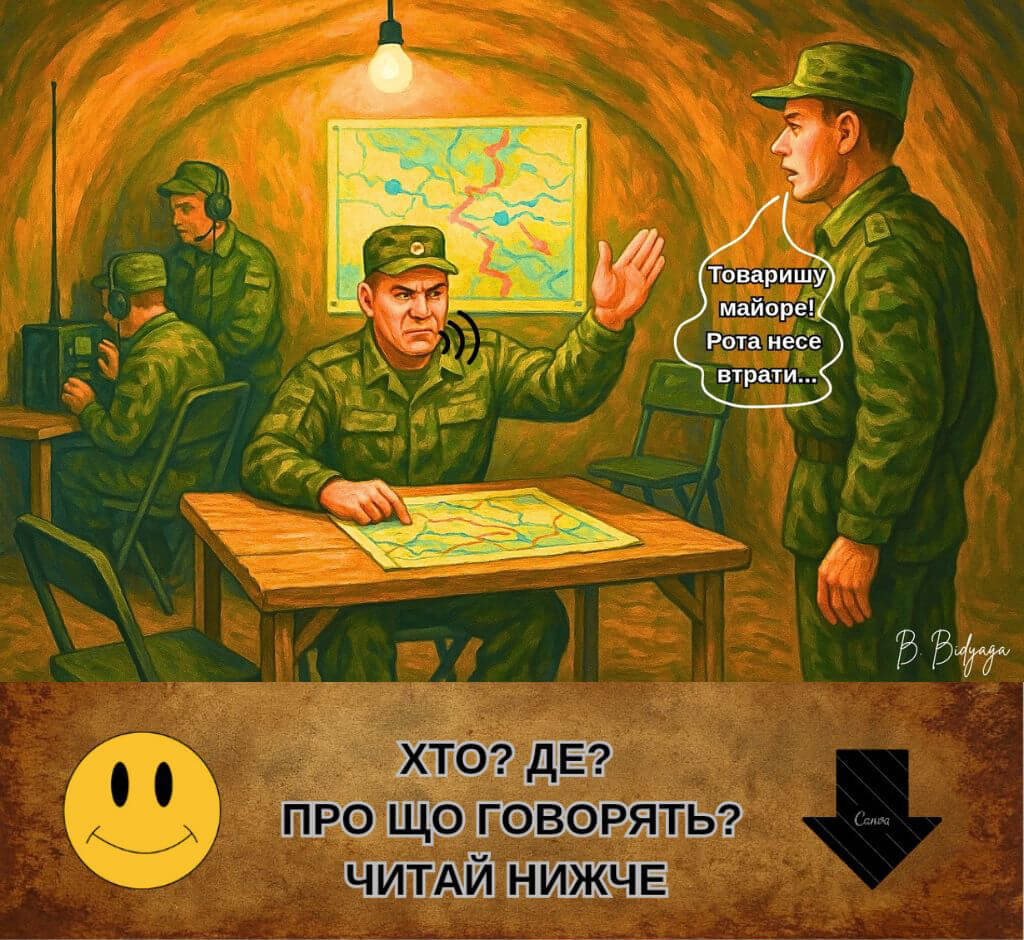 Російсько-український фронт. Штабна землянка. Діалог командира з сержантом.