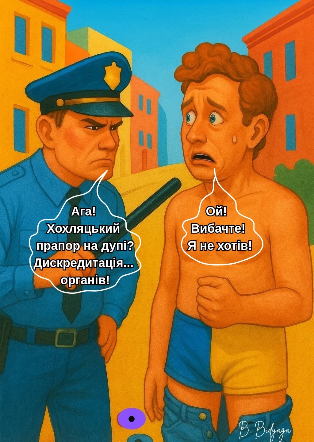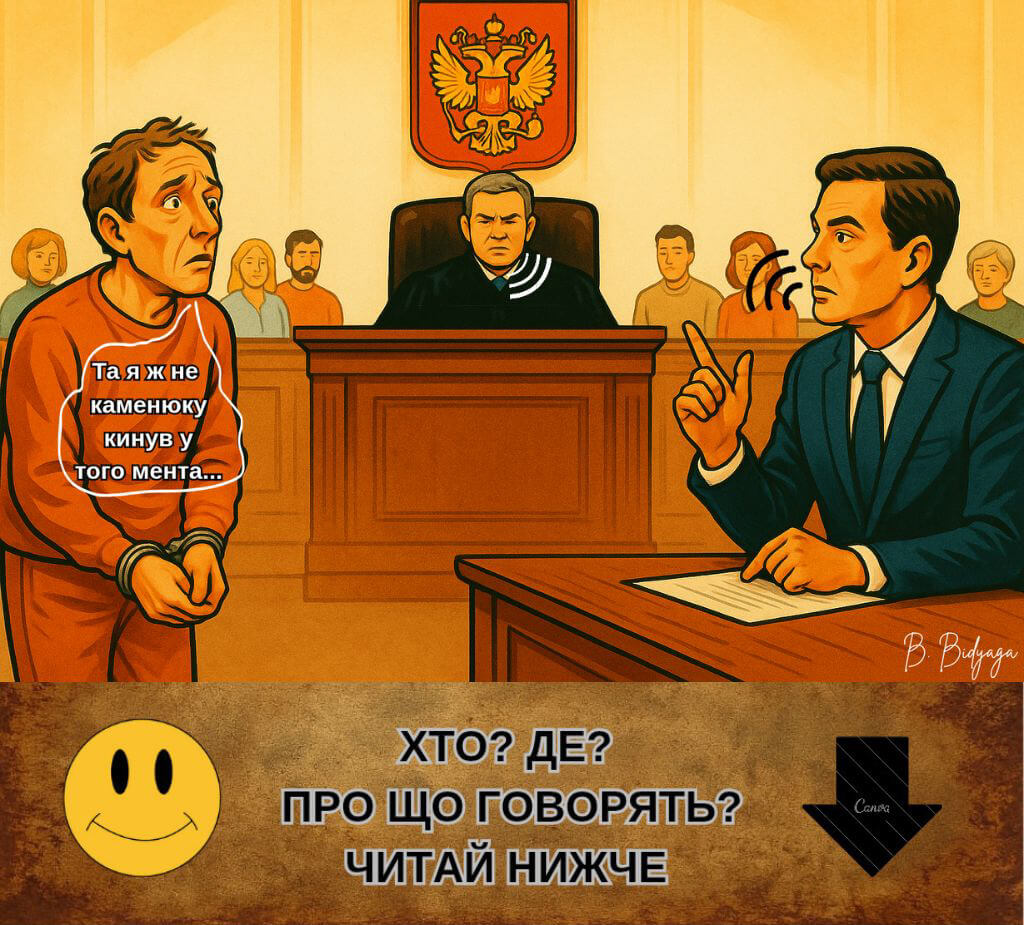 — Та я ж не каменюку кинув у того мента — а всього лише пластиковий стаканчик!
