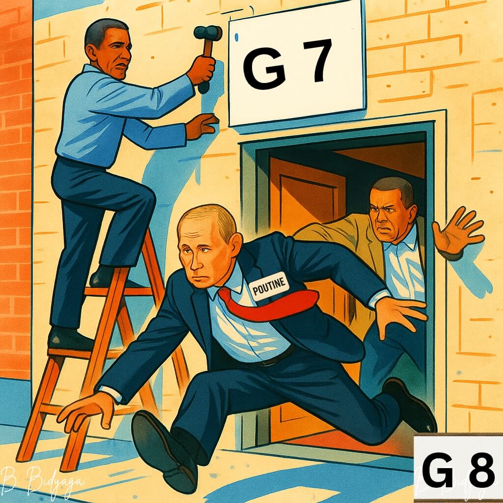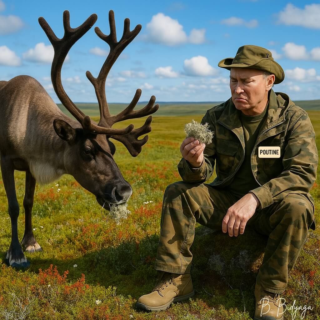 Poutine (enfonçant légèrement son éperon dans le cul flasque de la Russie, d’un ton moqueur) :